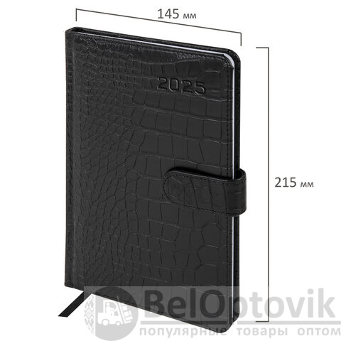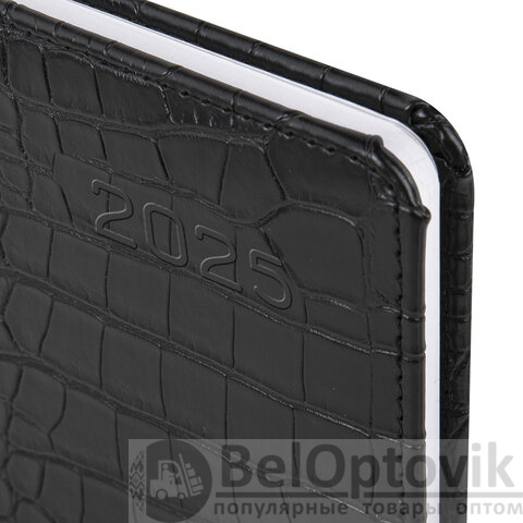 Еженедельник датированный 2025, А5, 145х215 мм, BRAUBERG "Party", под кожу, черный, 115970