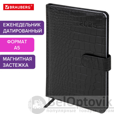 Еженедельник BRAUBERG "Party" – это аксессуар для неординарных людей. Сочные цвета и выраженная текстура выгодно дополнены магнитной застежкой. Дизайн, выполненный под крокодиловую кожу, станет эффектным дополнением к офисному образу.