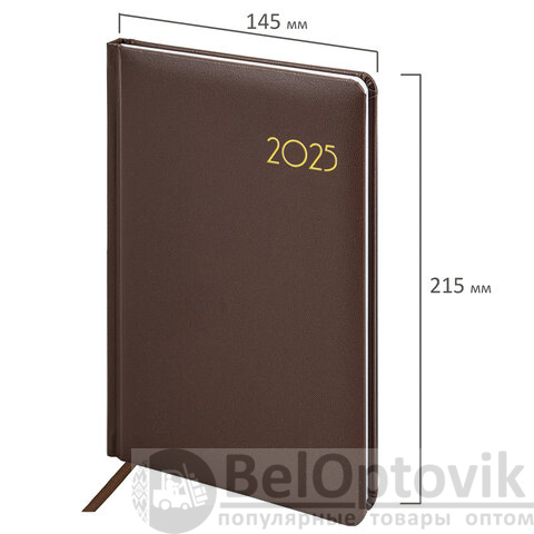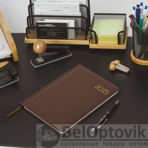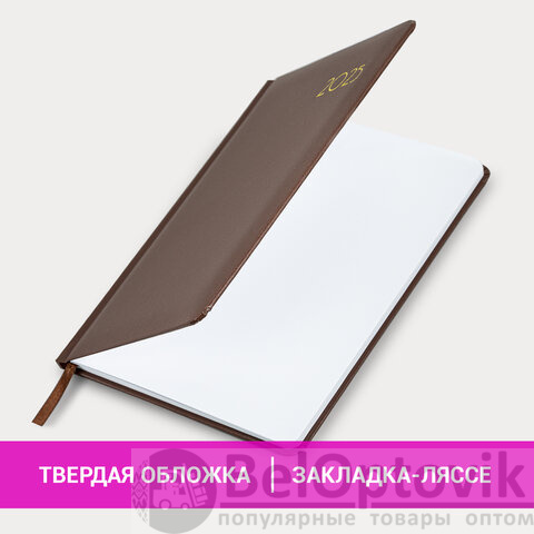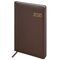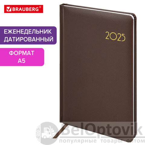 Еженедельник датированный 2025, А5, 145х215 мм, BRAUBERG "Select", балакрон, коричневый, 115973