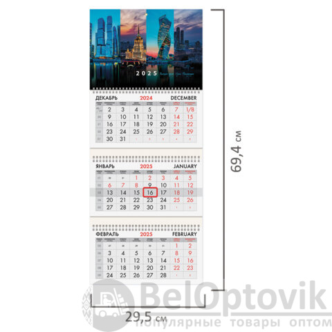Офисный календарь на 2025 год на 3-х гребнях. Для удобства планирования состоит из 3-х блоков с календарными сетками на три месяца - предыдущего, текущего и последующего. Блок календаря напечатан на офсетной бумаге плотностью 65 г/м2. Подложка изготовлена из мелованного картона плотностью 235 г/м2. Курсор-бегунок выделяет текущую дату. Вертикальное расположение.