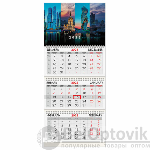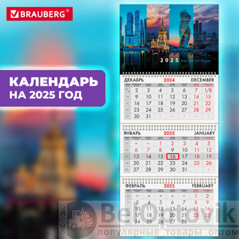 Календарь квартальный на 2025 г., 3 блока, 3 гребня, с бегунком, офсет, BRAUBERG, "Москва", 116093