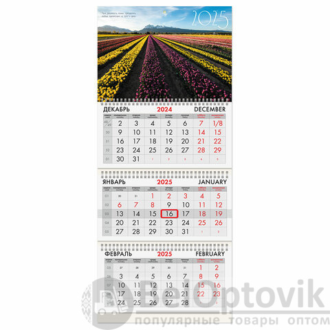 - Тип календаря: квартальный на 3 гребнях