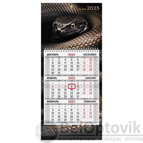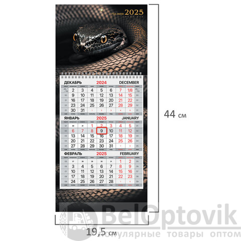 Календарь квартальный на 2025 г., 1 блок, 1 гребень, с бегунком, МИНИ, офсет, BRAUBERG, "Символ года", 116118