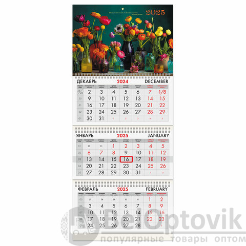 - Тип календаря: квартальный на 3 гребнях
