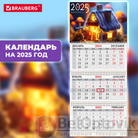 Календарь квартальный на 2025 г., 3 блока, 3 гребня, с бегунком, мелованная бумага, BRAUBERG, "Уют", 116139