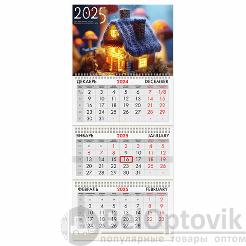 - Тип календаря: квартальный на 3 гребнях