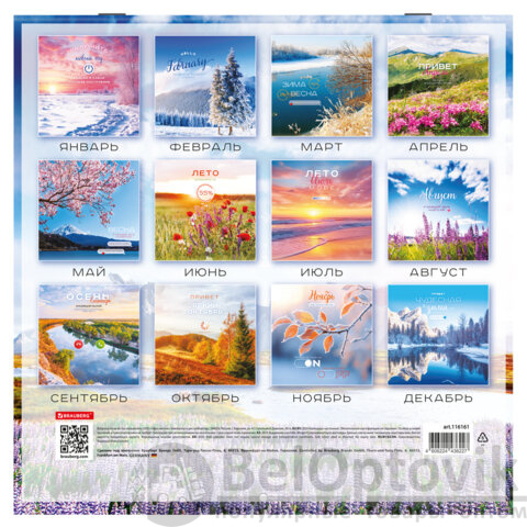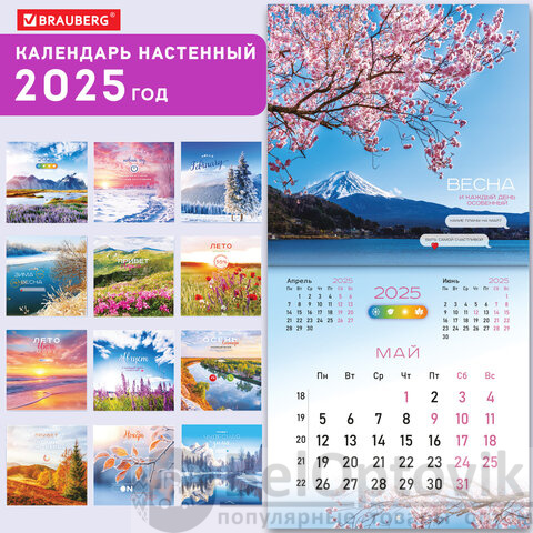 Календарь настенный перекидной на 2025 г., BRAUBERG, 12 листов, 29х29 см, "Времена года", 116161