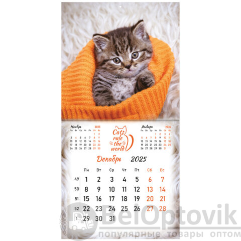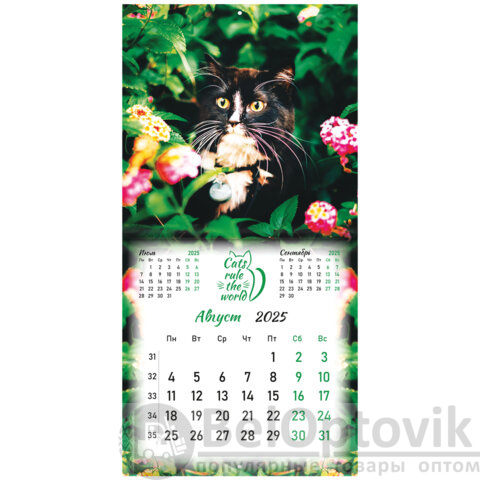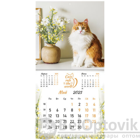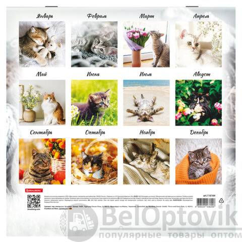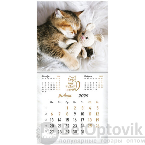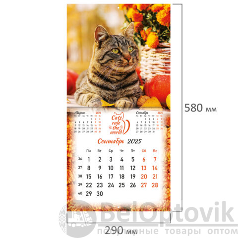 Яркая, красочная картинка дополнена календарной сеткой на месяц. Содержит 12 листов. Блок календаря напечатан на мелованной бумаге плотностью 130 г/м2. Оригинальная обложка изготовлена из мелованной бумаги плотностью 230 г/м2 с матовой ламинацией. Размер – 29х29 см, в развороте – 29х58 см. Дополнен отверстием для удобства крепления. Поставляется в индивидуальной упаковке (полибэг) с европодвесом и прокладкой из гофрокартона, что создает товару дополнительную защиту.