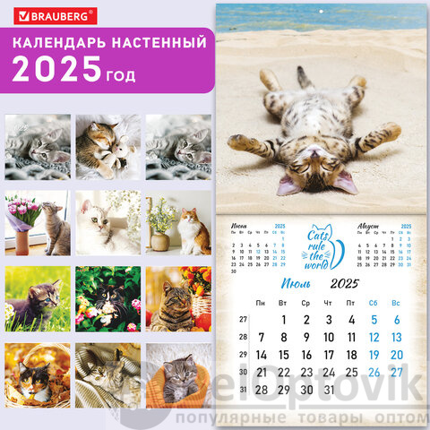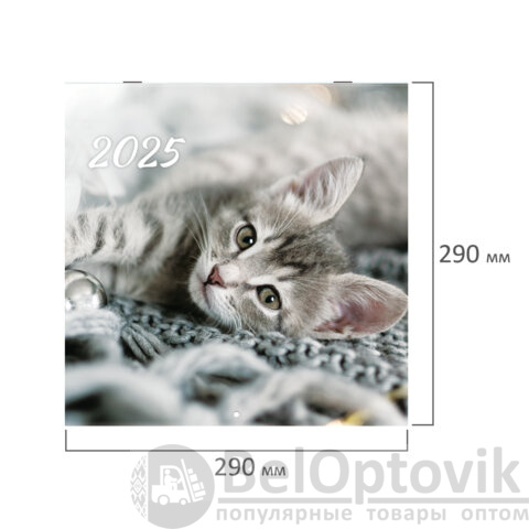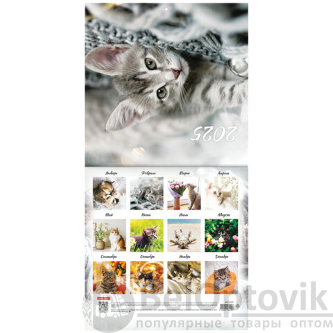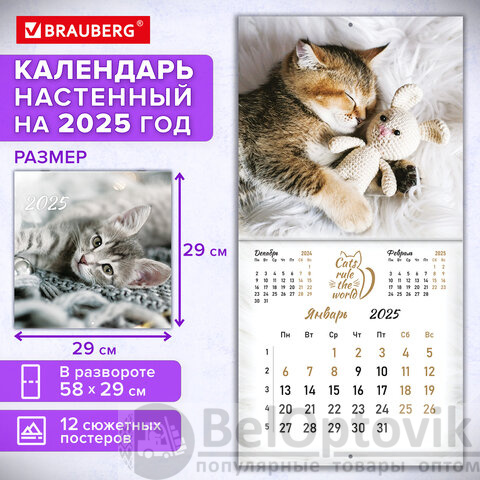 Календарь настенный перекидной на 2025 г., BRAUBERG, 12 листов, 29х29 см, "Милые котики", 116164