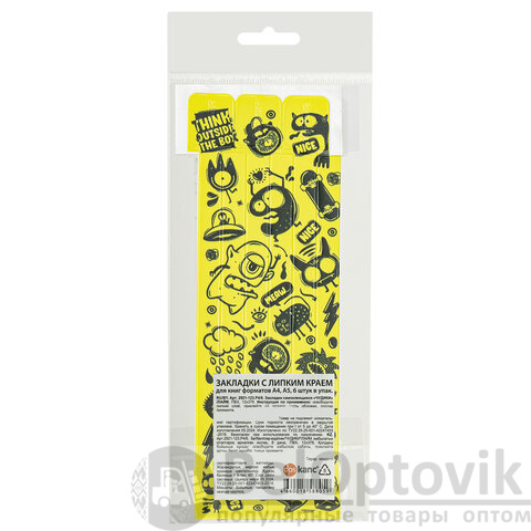 Закладки для книг с принтом САМОКЛЕЯЩИЕСЯ, КОМПЛЕКТ 6 шт., Чудики/лайм, ДПС, 2921-123.Р4/6
