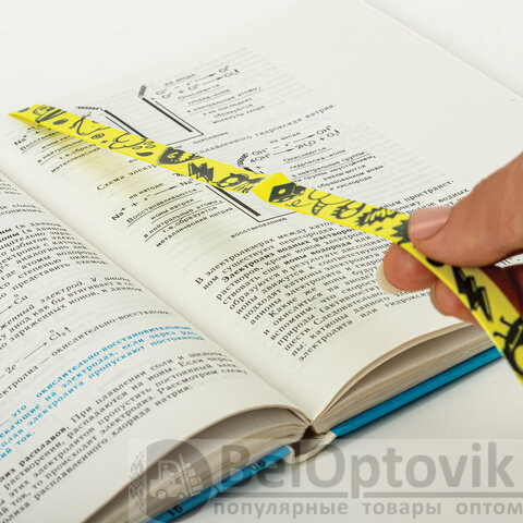 Закладка пластиковая. Основание закладки имеет липкую сторону, которую нужно приклеить на заднюю часть обложки книги и плотно прижать. Длина каждой закладки – 376 мм. Специальная длина для рабочих тетрадей формата А4. Если нужна закладка короче, можно просто отрезать изделие до нужной длины.