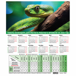 Календарь-табель на 2025 год с рабочими и выходными днями, 195х225 мм, STAFF, "Символ года", 116621