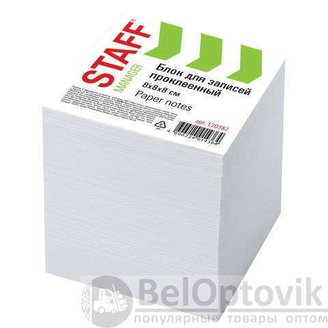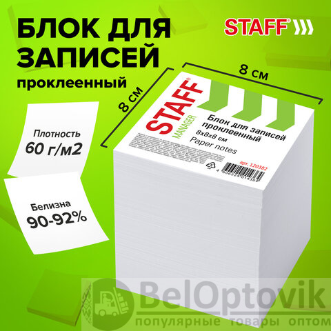 Блок для записей STAFF, проклеенный, куб 8х8 см,1000 листов, белый, белизна 90-92%, 120382