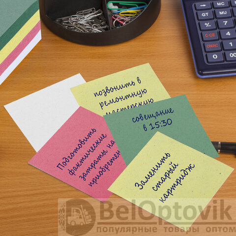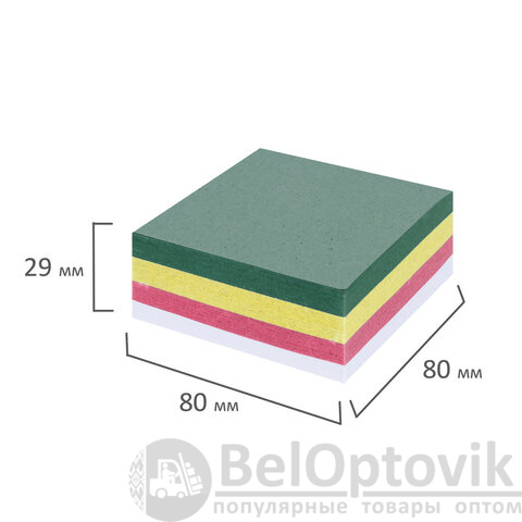 Блок из 350 листов сложен из квадратных листов размером 8 х 8 см. Листы изготовлены из высококачественной офсетной бумаги плотностью 60 г/м2. Блок для записей подходит для письма любыми типами ручек и карандашей. Поставляется в плотной термоусадочной пленке, защищающей при транспортировке. Может использоваться как в пластиковых подставках для настольных органайзерах, так и без подставок, поскольку листы проклеены по одной стороне, что делает блок устойчивым и листы не рассыпаются.