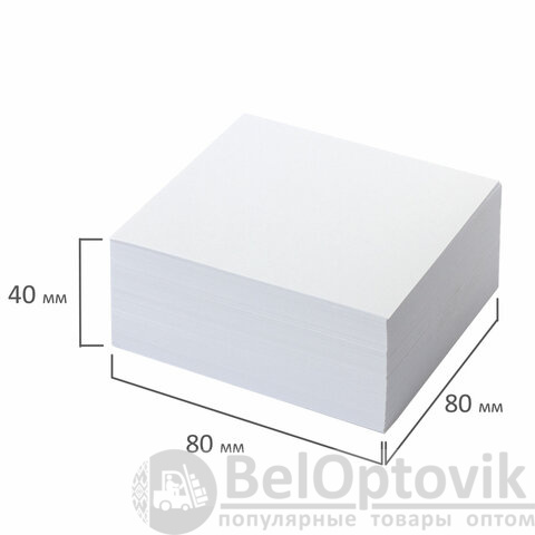 Блок высотой 4 см сложен из квадратных листов размером 8х8 см. Листы изготовлены из высококачественной офсетной бумаги плотностью 65 г/м2 и белизной 90-92%. Блок для записей подходит для письма любыми типами ручек и карандашей. Поставляется в плотной термоусадочной пленке, защищающей при транспортировке. Может использоваться как в пластиковых подставках для настольных органайзерах, так и без подставок, поскольку листы проклеены по одной стороне, что делает блок устойчивым и листы не рассыпаются.