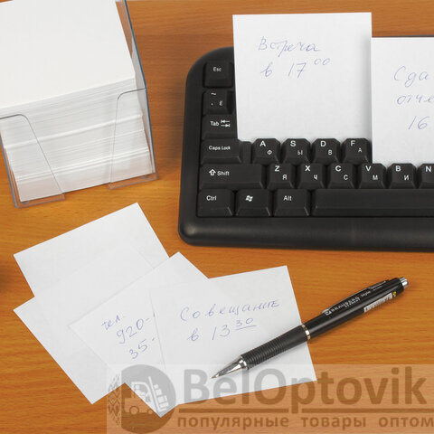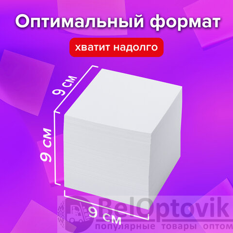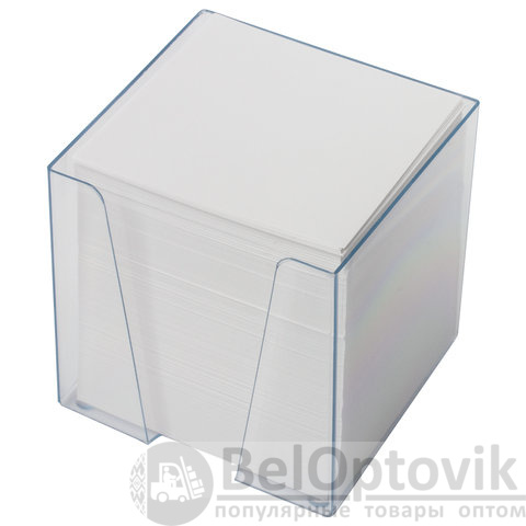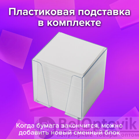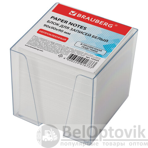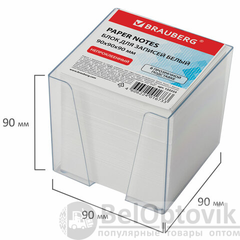 Блок для записей BRAUBERG в подставке прозрачной, куб 9х9х9 см, белый, белизна 95-98%, 122223