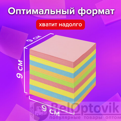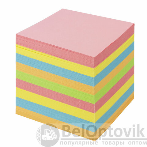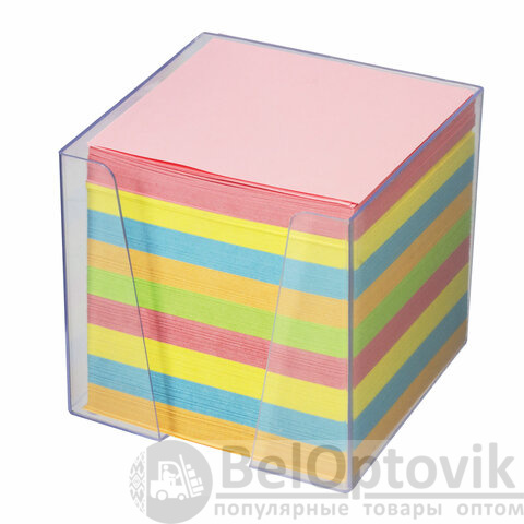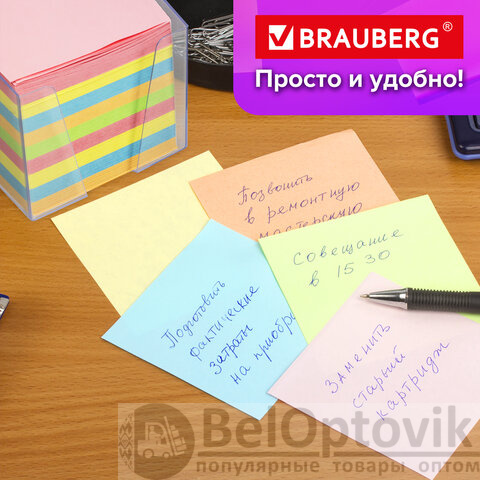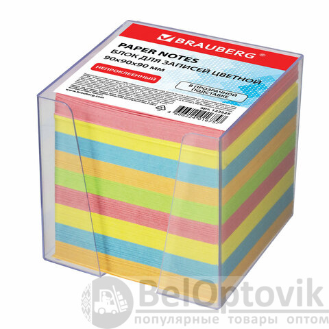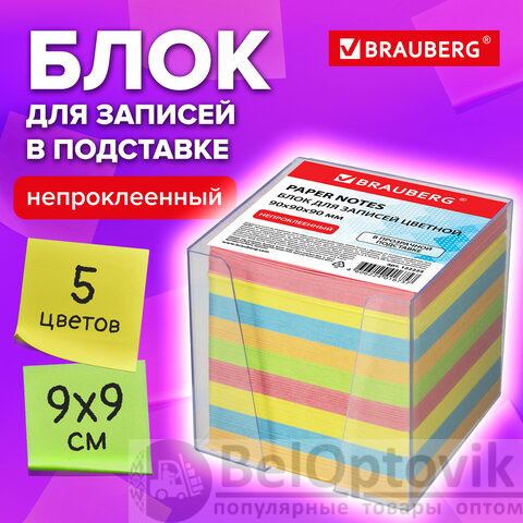 Блок для записей BRAUBERG в подставке прозрачной, куб 9х9х9 см, цветной, 122225