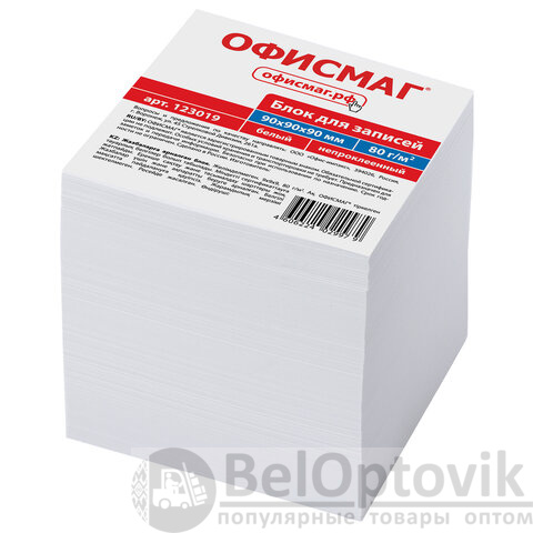 Блок для записей ОФИСМАГ непроклеенный, куб 9х9х9 см, белый, белизна 95-98%, 123019