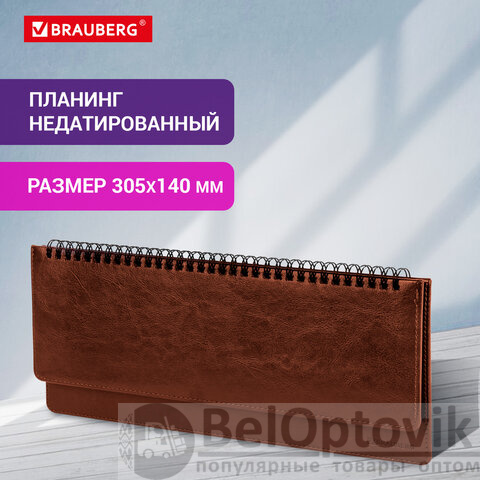Планинг настольный недатированный (305x140 мм) BRAUBERG "Imperial", кожзам, 60 л., коричневый, 123499