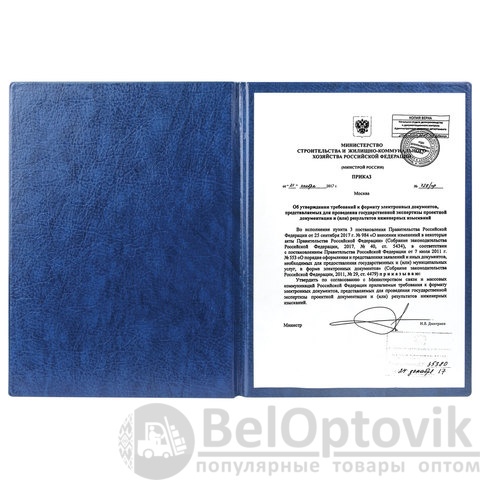 Папка адресная ПВХ "НА ПОДПИСЬ", формат А4, увеличенная вместимость до 100 листов, синяя, "ДПС", 2032.Н-101