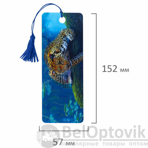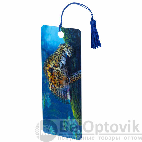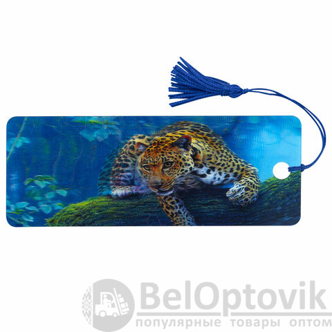 Закладка для книг 3D, BRAUBERG, объемная, "Леопард", с декоративным шнурком-завязкой, 125766