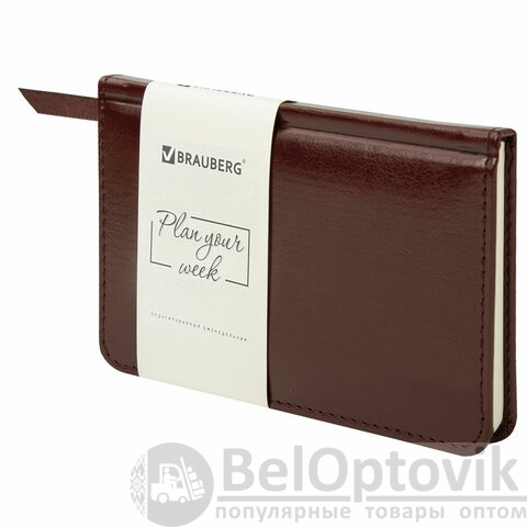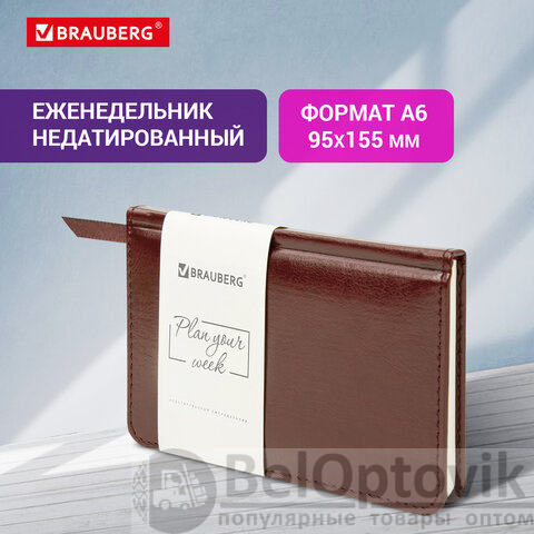 Еженедельник недатированный МАЛЫЙ ФОРМАТ 95х155 мм А6 BRAUBERG "Imperial" под кожу, 64 л., коричневый, 126185