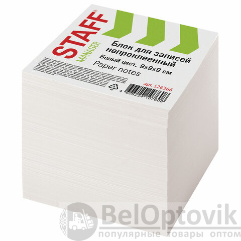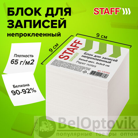 Блок для записей STAFF непроклеенный, куб 9х9х9 см, белый, белизна 90-92%, 126366