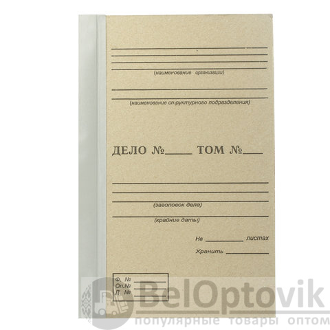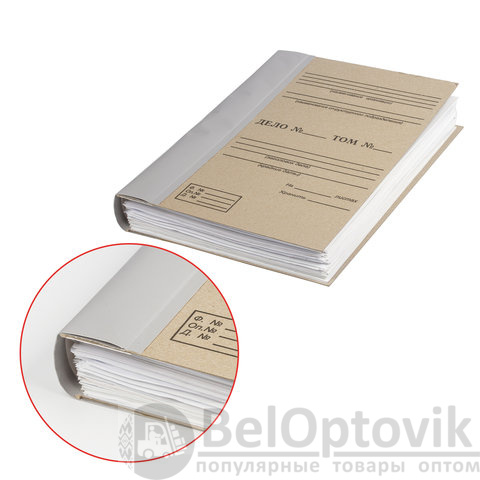 Папка для бумаг архивная под формат А4 с корешком из бумвинила. Мягкий огибной корешок снабжен клейкой основой и рассчитан на разную толщину переплета в зависимости от подборки документов. Обложка с печатью "ДЕЛО" по Форме 21.