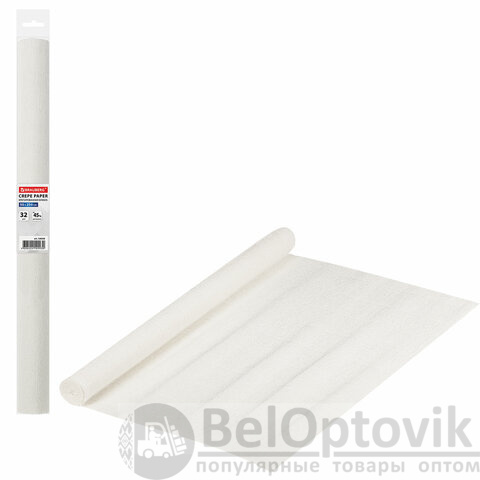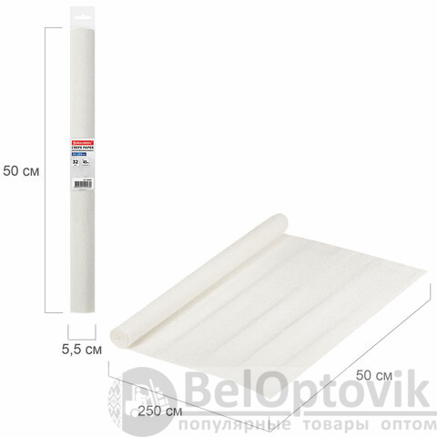 Бумага гофрированная/креповая, 32 г/м2, 50х250 см, белая, в рулоне, BRAUBERG, 126528