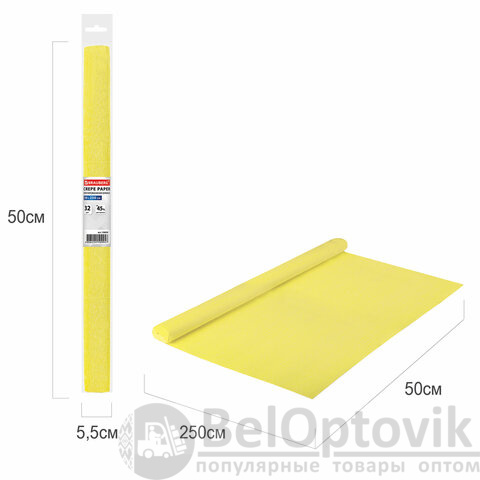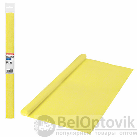 Бумага гофрированная/креповая, 32 г/м2, 50х250 см, желтая, в рулоне, BRAUBERG, 126529