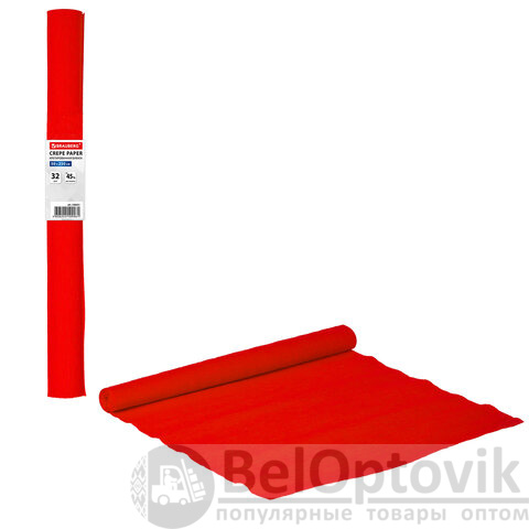 Бумага гофрированная/креповая, 32 г/м2, 50х250 см, красная, в рулоне, BRAUBERG, 126531