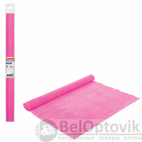 Бумага гофрированная/креповая, 32 г/м2, 50х250 см, розовая, в рулоне, BRAUBERG, 126532