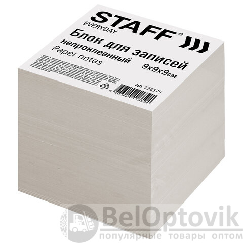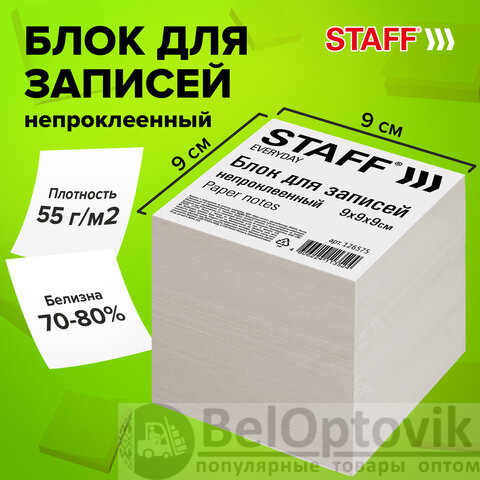 Блок для записей STAFF, непроклеенный, куб 9х9х9 см, белизна 70-80%, 126575