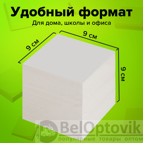 Блок высотой 9 см сложен из квадратных листов размером 9х9 см. Листы изготовлены из высококачественной офсетной бумаги плотностью 55 г/м2 и белизной 70-80%. Блок для записей подходит для письма любыми типами ручек и карандашей. Поставляется в плотной термоусадочной пленке, защищающей при транспортировке. Для повышения удобства рекомендуется использование в пластиковых подставках и настольных органайзерах.