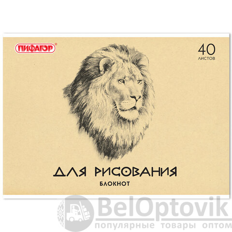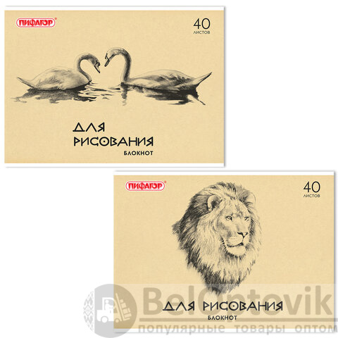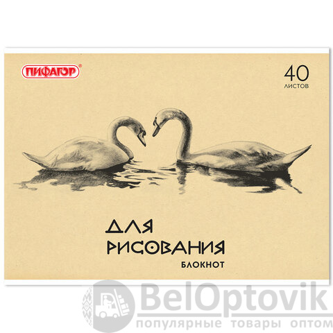 Блокнот для рисования, А4, 40 л., обложка офсет, ПИФАГОР, 200х285 мм, "Лебеди/Лев", 126962