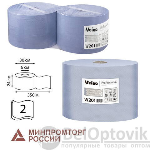 Бумага протирочная VEIRO (Система W1), КОМПЛЕКТ 2 шт., 1000 листов в рулоне, 24х35 см, 2-слойная, Comfort, W201 5217