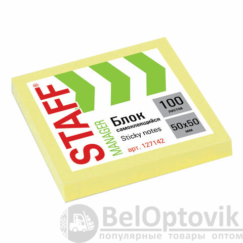 Блок самоклеящийся (стикеры) STAFF, 50х50 мм, 100 листов, желтый, 127142