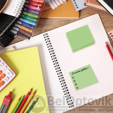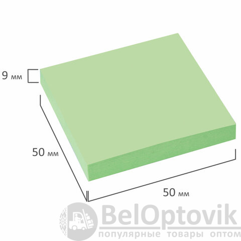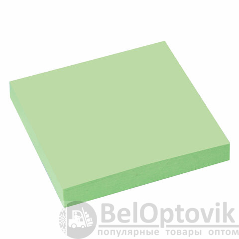 Стикеры зелёного пастельного цвета в форме квадрата 50х50 мм состоят из 100 листов. Плотность бумаги составляет 75 г/м2. Клейкий слой - 22 Н/м. Легко клеятся к любой поверхности. Не оставляют следов. Упакованы в полиэтиленовую пленку.