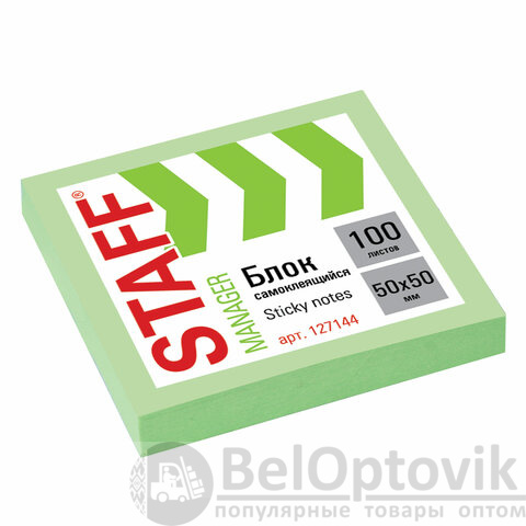 Блок самоклеящийся (стикеры) STAFF, 50х50 мм, 100 листов, зеленый, 127144