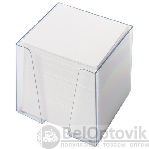 Блок для записей ОФИСМАГ в подставке прозрачной, куб 9х9х9 см, белый, белизна 95-98%, 127798