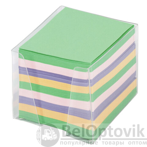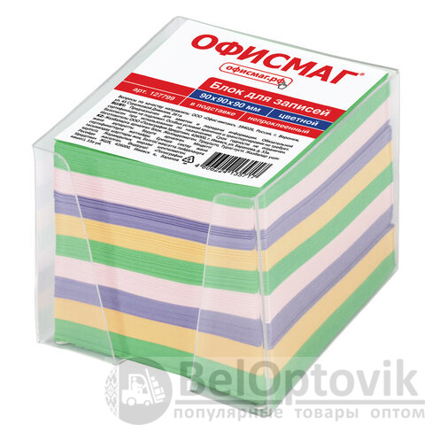 Блок для записей ОФИСМАГ в подставке прозрачной, куб 9х9х9 см, цветной, 127799
