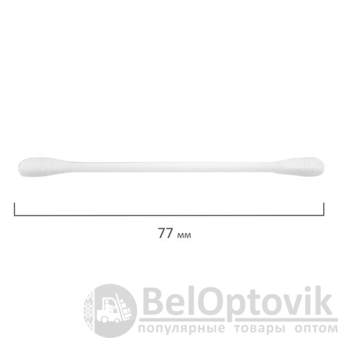 Имеют плотную намотку, что не позволяет отслаиваться волокнам при использовании. Производятся из 100% хлопка. Двусторонние ватные палочки длиной 77 мм имеет специальную форму с ограничителем. Выполнены в белом цвете. Упругая пластиковая палочка не гнется при использовании. Удобный пластиковый стакан для хранения содержит 200 штук.