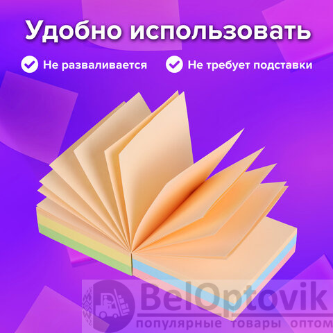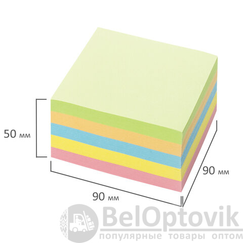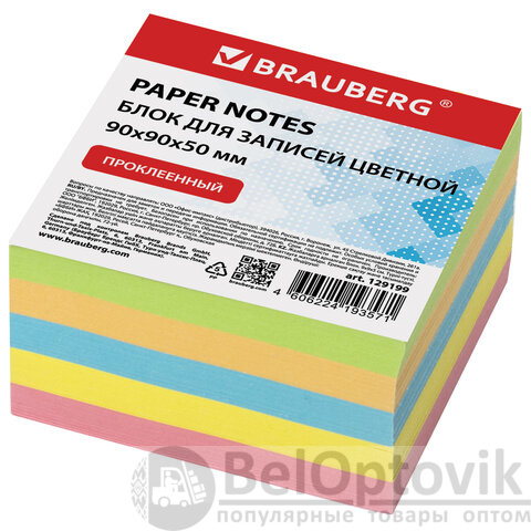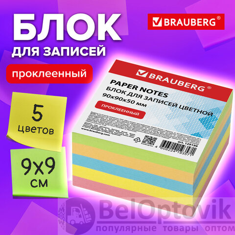 Блок для записей BRAUBERG проклеенный, 9х9х5 см, цветной, 129199
