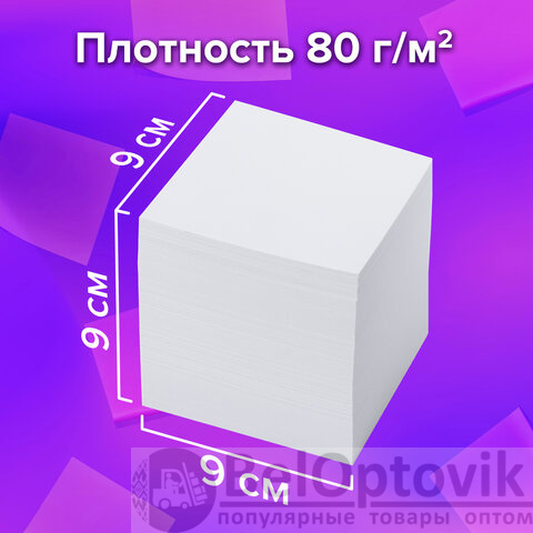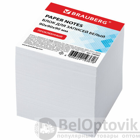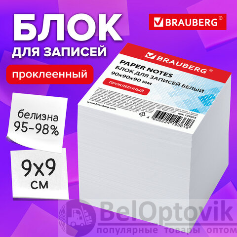 Блок для записей BRAUBERG проклеенный, куб 9х9х9 см, белый, белизна 95-98%, 129203