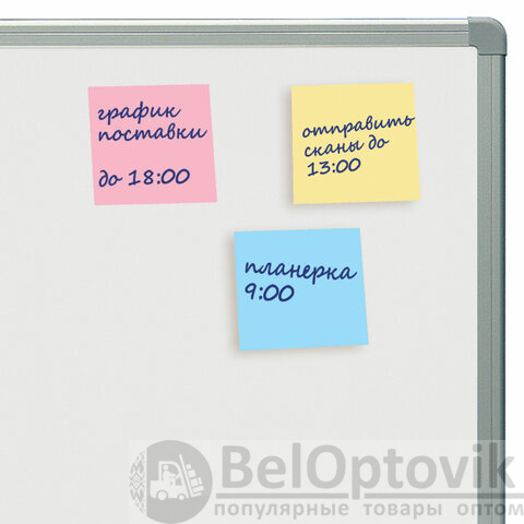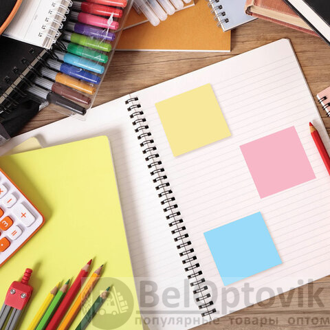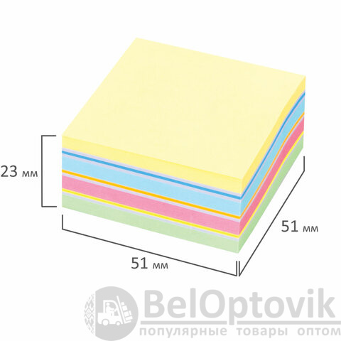 Стикеры 5 пастельных цветов (желтый, голубой, розовый, зелёный, белый) и 3 неоновых (синий, оранжевый, желтый) в форме куба 51х51 мм состоят из 250 листов. Плотность бумаги составляет 75 г/м2. Клейкий слой - 22 Н/м. Легко клеятся к любой поверхности. Не оставляют следов. Упакованы в полиэтиленовую пленку.