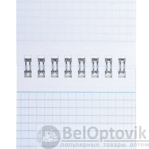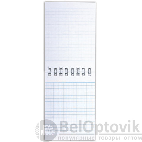 Блокнот формата А7 на евроспирали содержит 40 листов с линовкой в клетку. Имеет верхнее расположение переплета. Обложка выполнена из мелованного картона плотностью 200 г/м2. Внутренний блок состоит из белой офсетной бумаги плотностью 60 г/м2.
