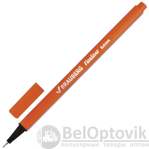 Ручка капиллярная (линер) BRAUBERG "Aero", ОРАНЖЕВАЯ, трехгранная, металлический наконечник, линия письма 0,4 мм, 142249