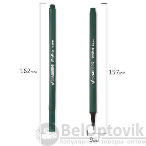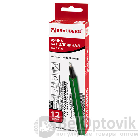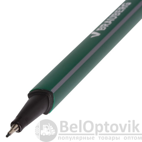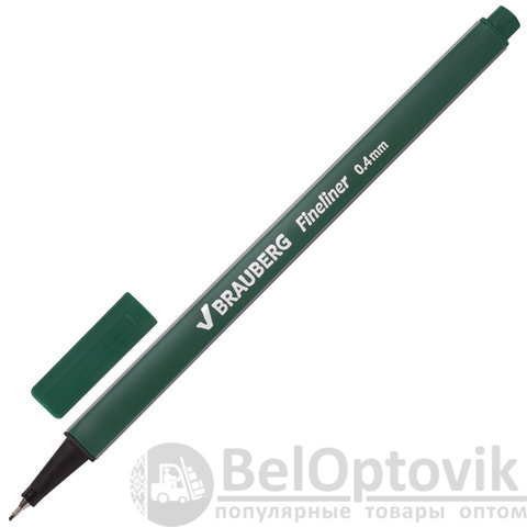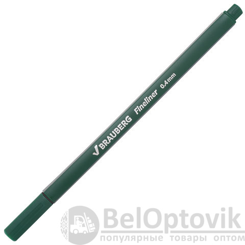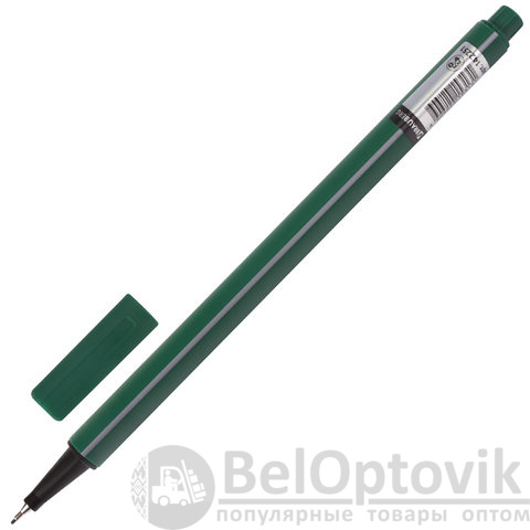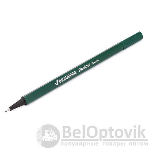 Ручка капиллярная (линер) BRAUBERG "Aero", ТЕМНО-ЗЕЛЕНАЯ, трехгранная, металлический наконечник, линия письма 0,4 мм, 142251