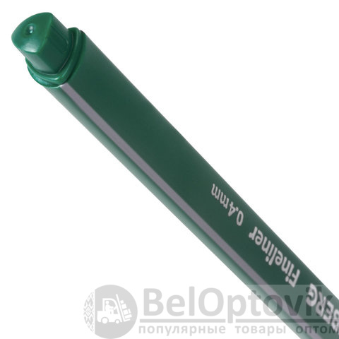 Ручка капилярная темно-зеленого цвета имеет трехгранную форму корпуса, диаметр которого 9 мм. Благодаря такой форме корпуса изделие удобно располагать в руке. Супертонкий износостойкий металлический наконечник 0,4 мм идеально подходит для создания точных и аккуратных линий. Цвет корпуса и колпачка соответствует цвету темно-зеленых чернил.