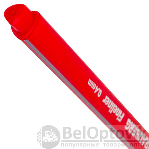 Ручка капилярная красного цвета имеет трехгранную форму корпуса, диаметр которого 9 мм. Благодаря такой форме корпуса изделие удобно располагать в руке. Супертонкий износостойкий металлический наконечник 0,4 мм идеально подходит для создания точных и аккуратных линий. Цвет корпуса и колпачка соответствует цвету красных чернил.